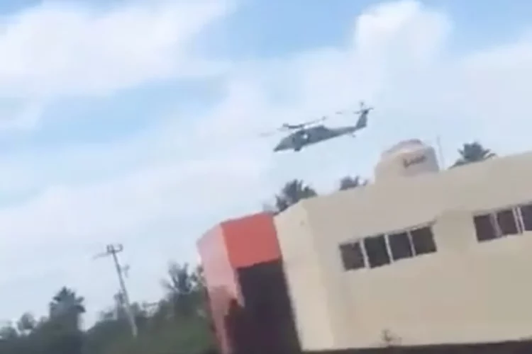 En redes sociales se viralizaron varias imágenes del helicóptero artillado de la Marina sobrevolando la zona de Mochicahui.