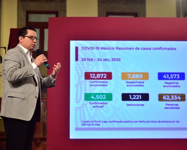 Ciudad de México, 24 de abril de 2020 (NACIÓN 14).- El Director General de Epidemiología de la Secretaría de Salud, José Luis Alomía Zegarra, informó que al corte del viernes 24 de abril, la cifra de fallecimientos por COVID-19 se incrementó a mil 221 y suman 12 mil 872 casos confirmados acumulados.