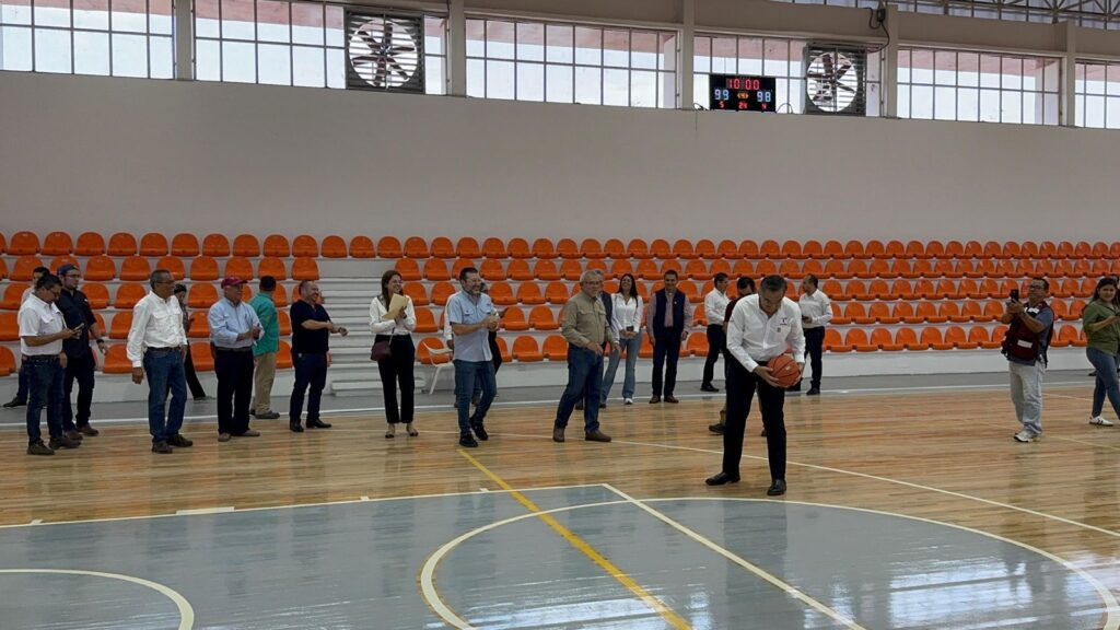 Villarreal Anaya también constató la rehabilitación del gimnasio Manuel Raga Navarro, donde se llevan a cabo acciones diversas como la colocación de duela de maple en cancha de basquetbol profesional, rehabilitación de puertas metálicas y de aluminio, cambio de luminarias, instalación de un sistema de ventilación y extracción de aire, así como aplicación de sistema aislante térmico en la cubierta de lámina en el exterior. Estos trabajos suman un monto de 6 millones 62 mil 764 pesos y tienen un 93 por ciento de avance.