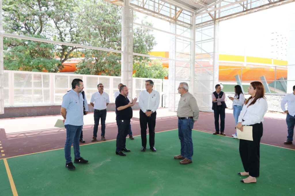 En primera instancia, recorrió la Unidad Deportiva Adolfo Ruiz Cortines, donde supervisó los trabajos de construcción de la techumbre en las canchas de basquetbol y la rehabilitación de las canchas de voleibol, acciones que fortalecen la convivencia, brindando espacios dignos para el deporte y la sana recreación de niñas, niños, jóvenes y familias.