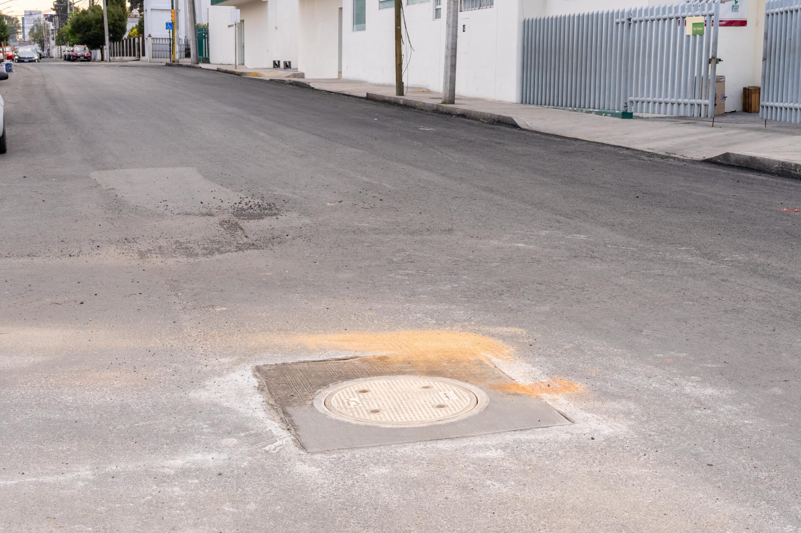 Los trabajos consistieron en el fresado y la posterior colocación de carpeta asfáltica sobre una extensión de mil 950.20 metros cuadrados, así como labores de precisión técnica que incluyeron la renivelación de tres rejillas pluviales, tres pozos de visita y tres rejillas tipo Irving, además del ajuste de dos cajas de válvulas para asegurar el correcto funcionamiento de los servicios básicos bajo el asfalto.