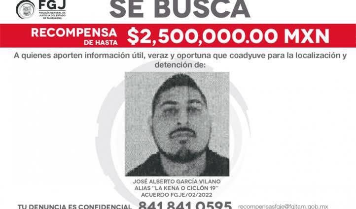 La Fiscalía General de Justicia de Tamaulipas lo había catalogado como una de las personas más buscadas del estado y ofrecía una recompensa de 2.5 millones de pesos por información que llevara a su captura.